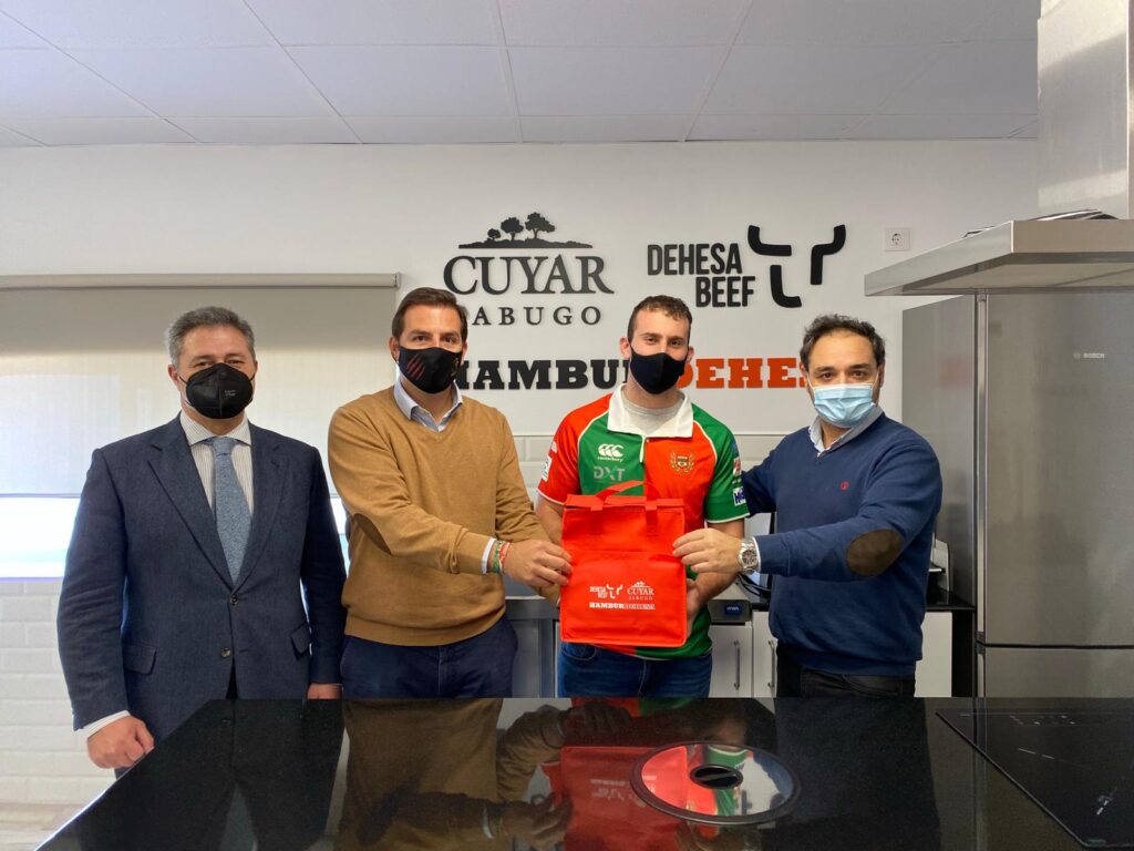 Ignacio Agra, nuestro centro argentino, ya tiene su premio en casa, un lote de productos de Hamburdehesa, patrocinador del Club Amigos Del Rugby. Lo recogió ayer en la sede de la