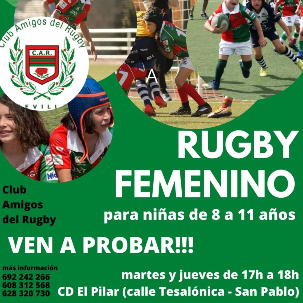 Los entrenamientos de rugby para niñas de entre 8 y 11 años comenzarán el próximo martes, 28 de septiembre, a las 17:00 h., en las instalaciones del Colegio El Pilar (San Pablo). El